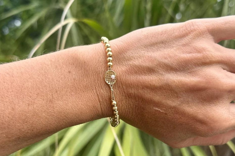- 18k Gold-Plated Pickleball Paddle Charm on stainless steel bracelet