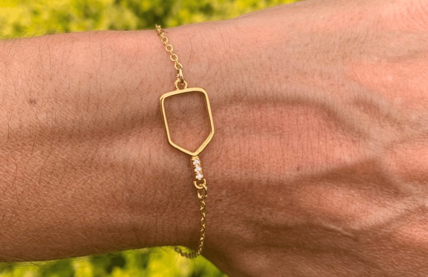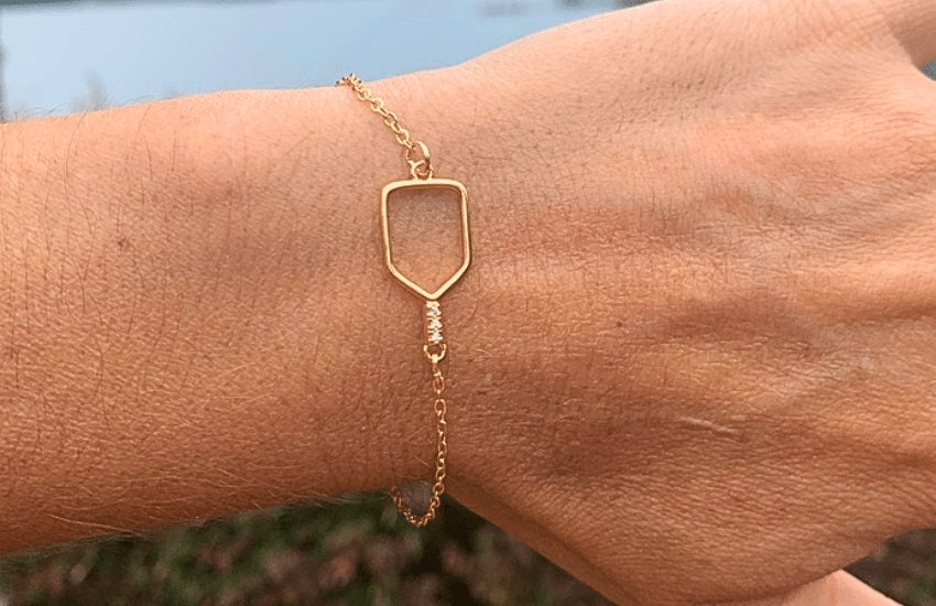 - 18k Gold-Plated Pickleball Paddle Charm on stainless steel bracelet